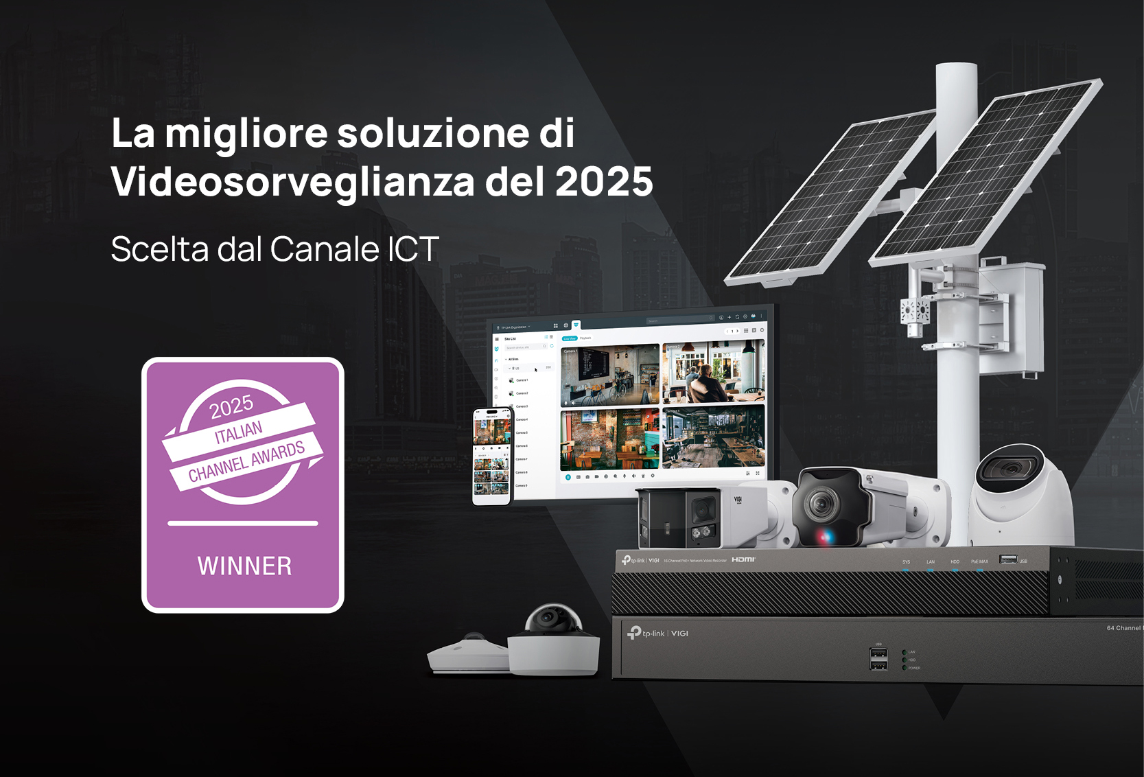 VIGI by TP-Link è stata premiata come Miglior Vendor di soluzioni di Videosorveglianza durante la Serata di Gala degli ITALIAN CHANNEL AWARDS 2025, l'iniziativa che consente agli Operatori del Canale di votare e premiare i migliori Produttori, Distributori, System Integrator e Manager IT appartenenti al mercato professionale del Canale ICT.