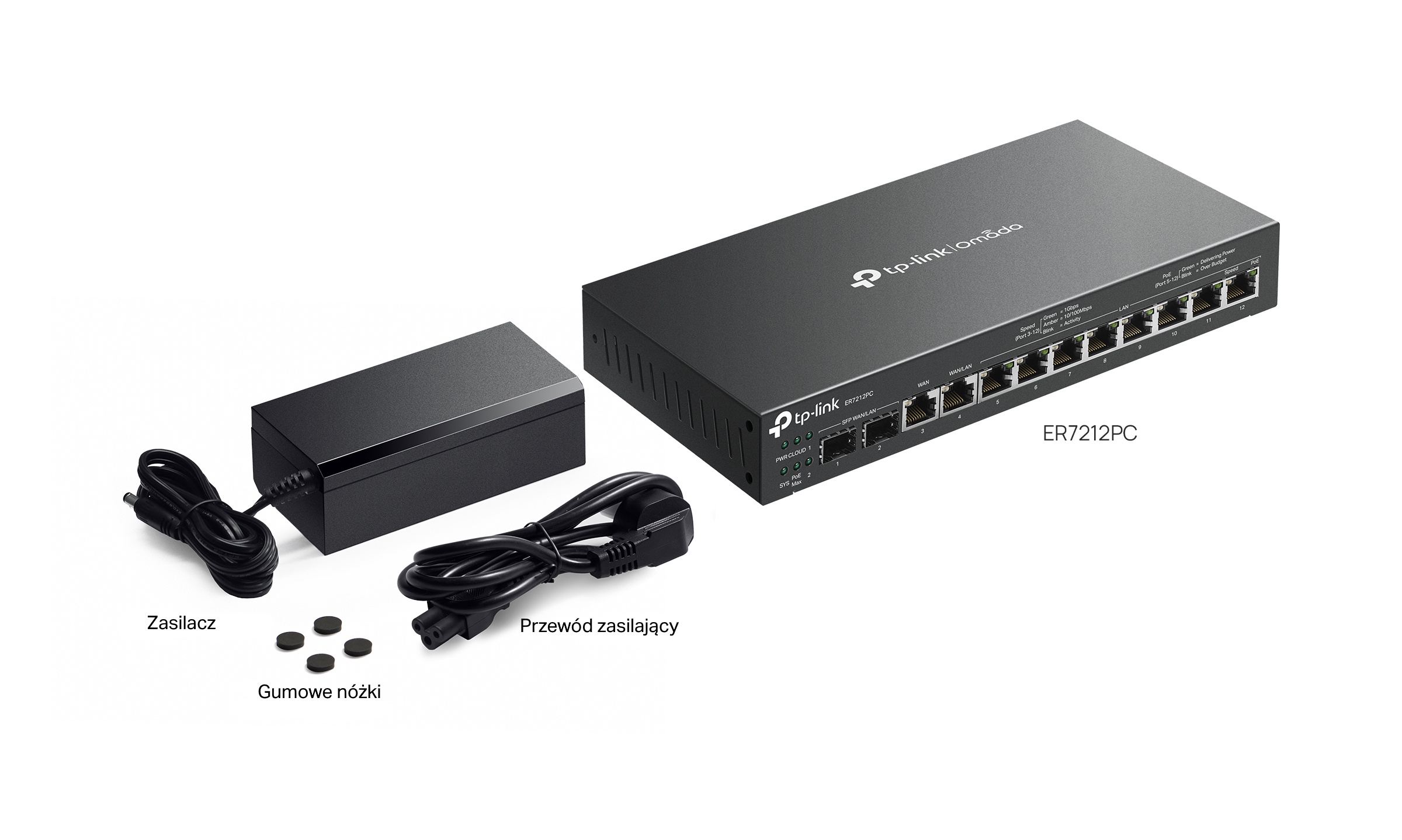 ER7212PC to brama VPN, która integruje 8 portów PoE+ oraz funkcję centralnego zarządzania. Umożliwia łatwe podłączenie punktów dostępowych Omada i urządzeń obsługujących PoE.