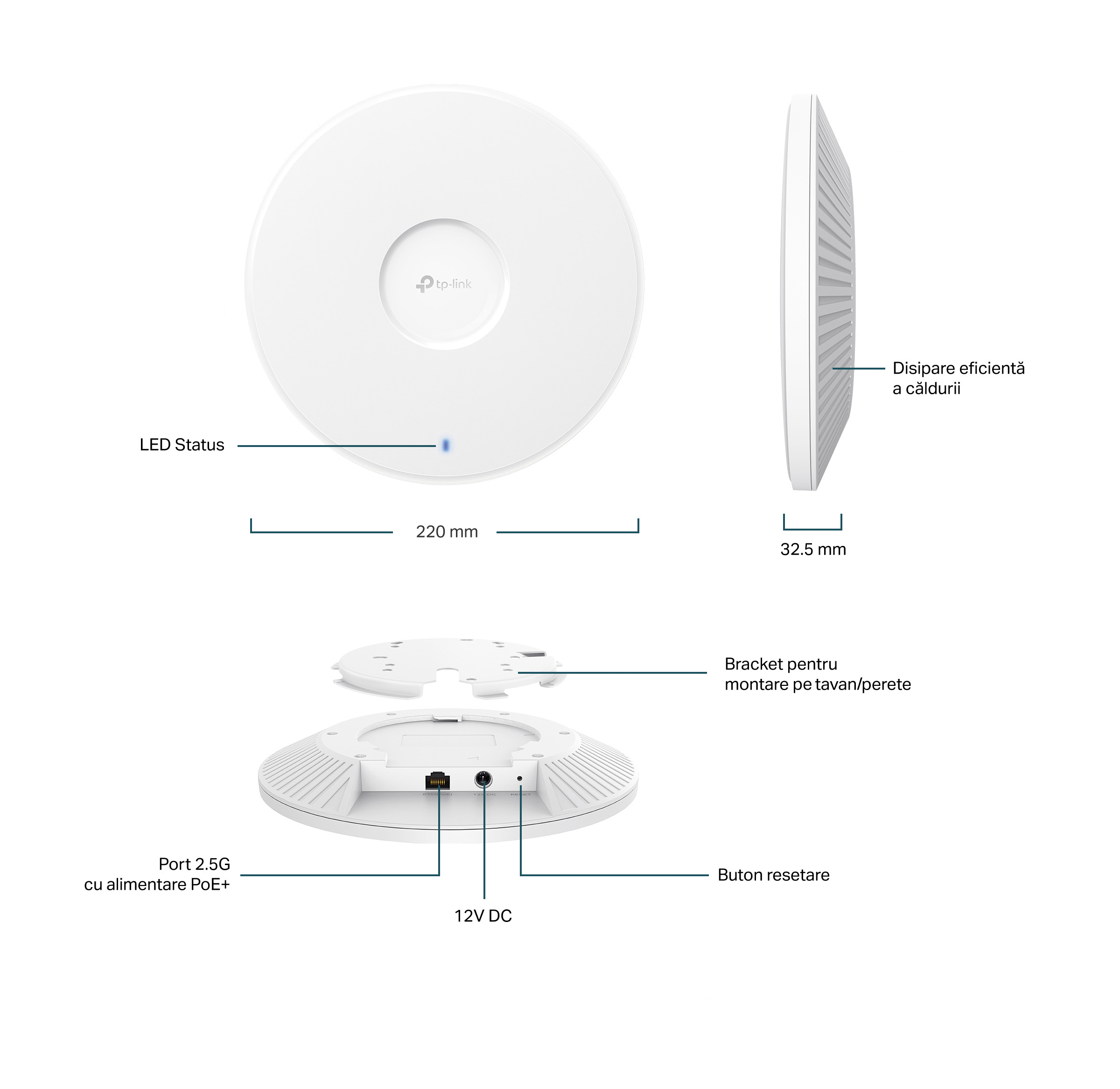 Access Point Wi-Fi 7 Tri-Band BE9300 cu Port 2.5G (fără adaptor DC în pachet)