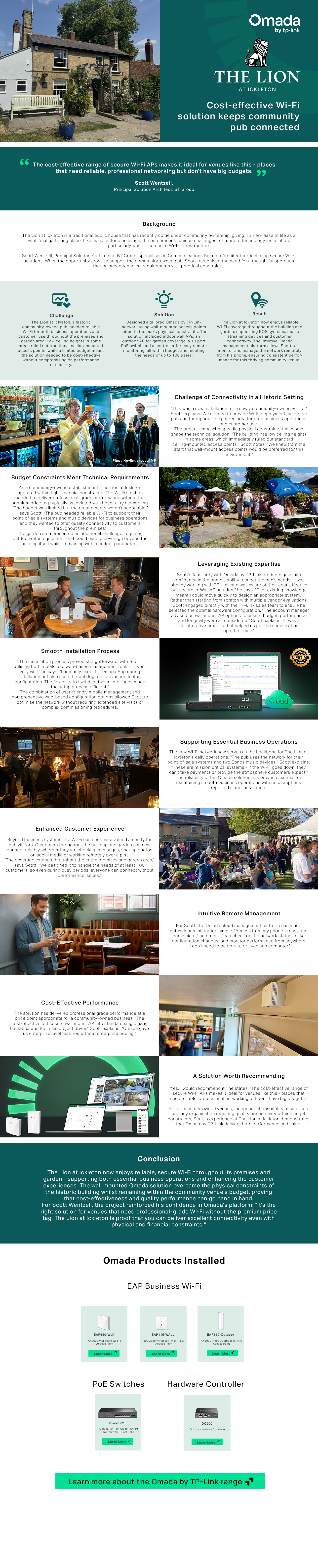 For community-owned venues, independent hospitality businesses and any organisation requiring quality connectivity within budget constraints, Scott's experience at The Lion at Ickleton demonstrates that Omada by TP-Link delivers both performance and value.